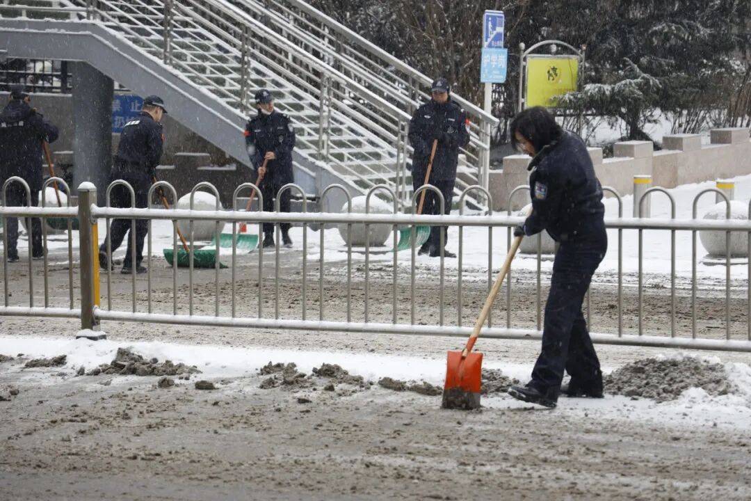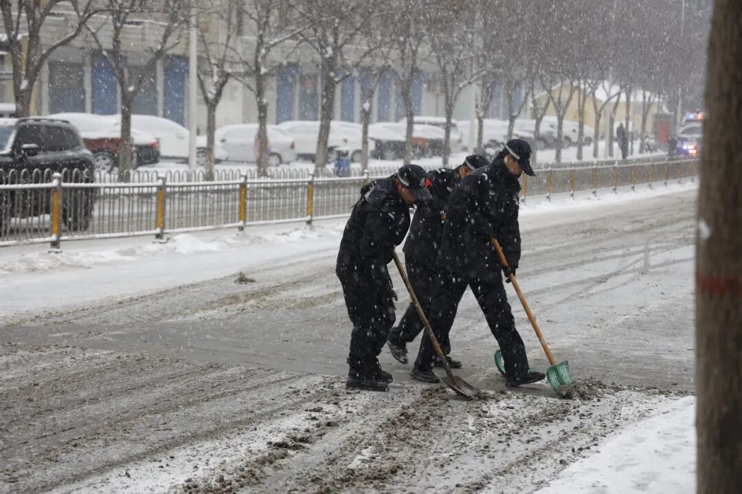 清晨8点,晋城城区公安全体民辅警携带铁锹、雪铲等清雪工具,迅速奔赴城区主干道、学校周边、桥梁坡道等易积雪结冰区域,有条不紊地开展工作。针对陡坡、桥梁等危险路段重点清理、反复巡查,及时排查路面安全隐患,为群众开辟出安全畅通的出行通道。至上午11时,辖区重点路段积雪已基本清理完毕,道路通行秩序恢复平稳有序。