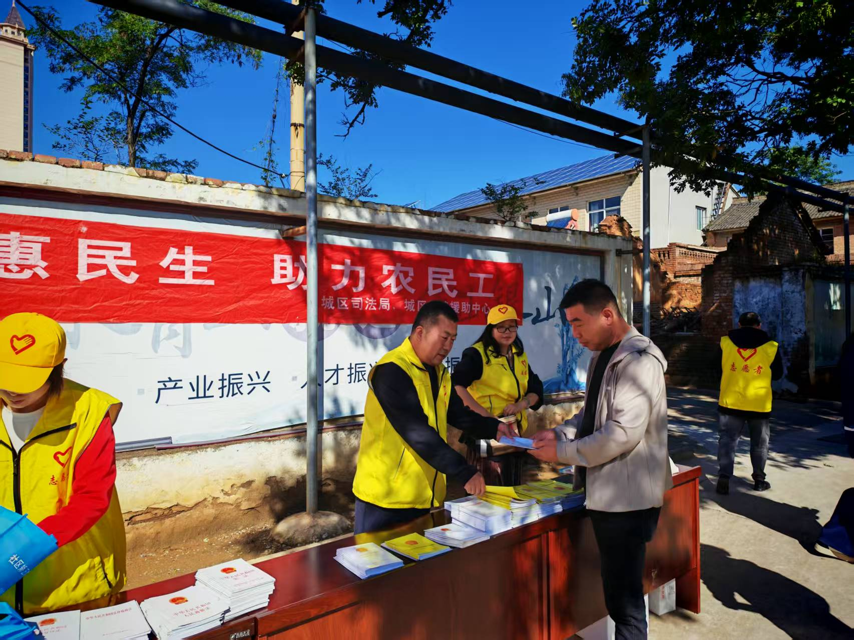 活动依托社区文化广场设立宣传台,悬挂宣传标语。局党组书记、局长杨继平与工作人员一起,向社区居民发放《中华人民共和国法律援助法》《山西省法律援助条例》等书籍、宣传彩页、宣传袋1200余份,并提醒居民外出务工需保留考勤、工资条等关键证据。