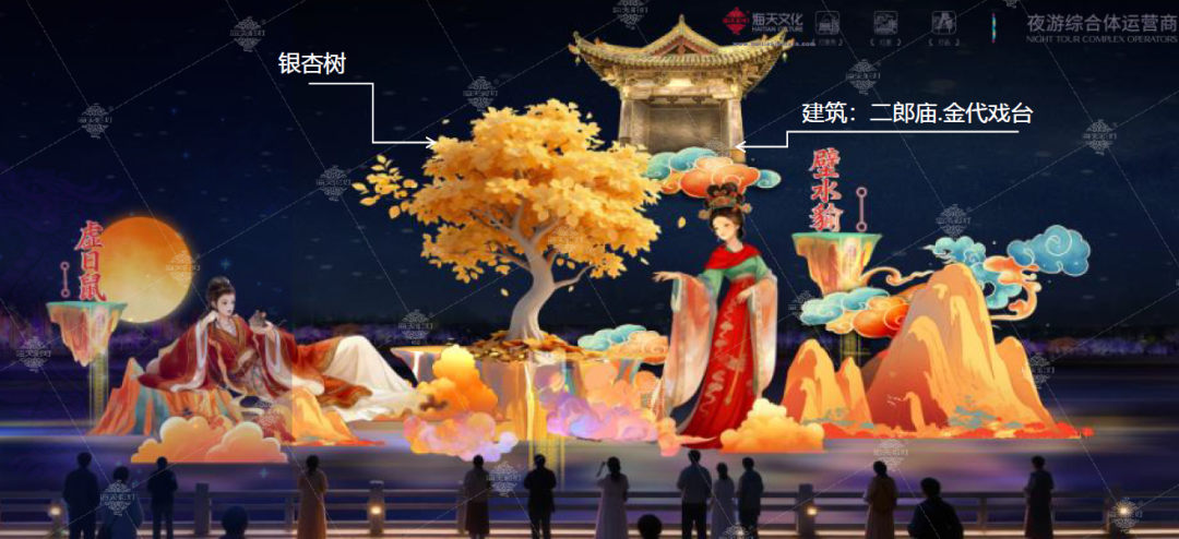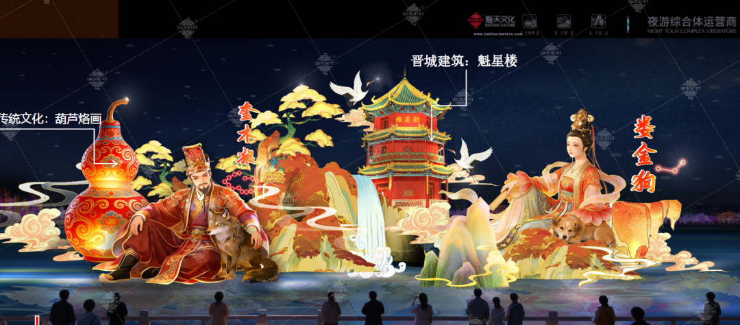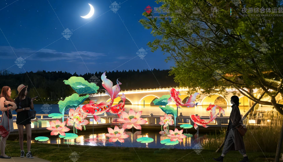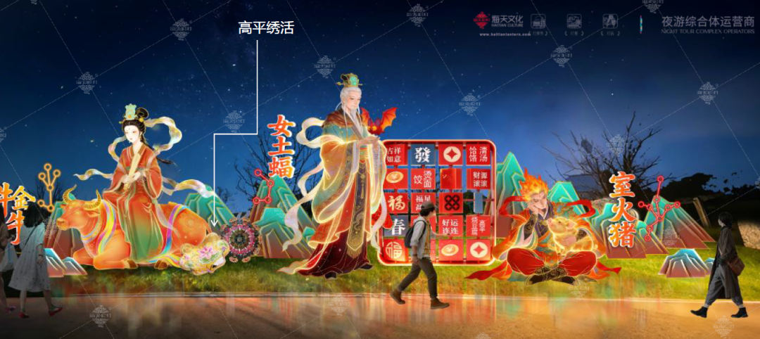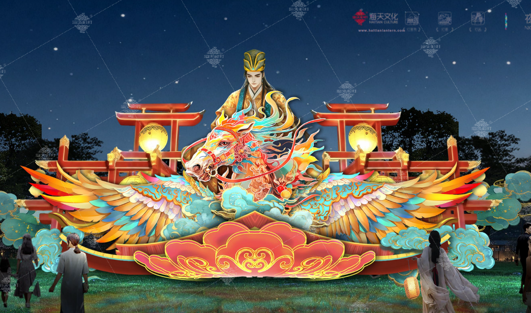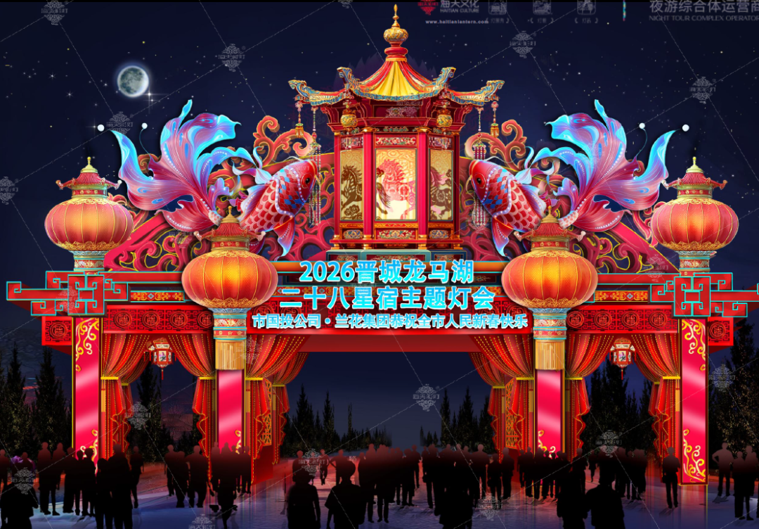 灯会布展于凤城康养示范区龙马湖南部区域,设置了“东·青龙 春生”“南·朱雀 夏长”“西·白虎 秋收”“北·玄武 冬藏”四大主题板块,共39组主题彩灯,实现“一步一景、一灯一故事”的沉浸式观灯体验。