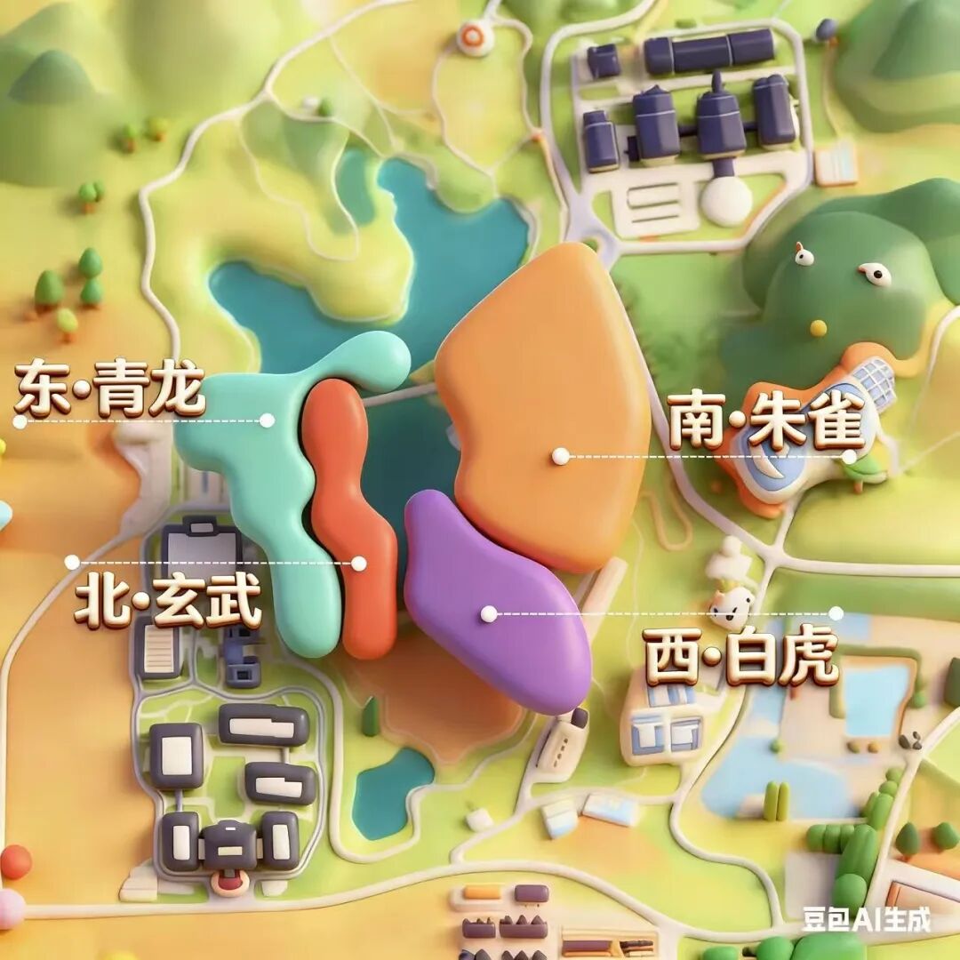 💡小编建议游览动线:南·朱雀(入园开篇)→西·白虎(互动非遗)→北·玄武(静谧赏景)→东·青龙(压轴收尾),全程2-3小时,新手直接抄作业,不用瞎逛!