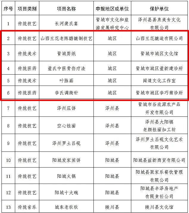 晋城市第八批市级非物质文化遗产
