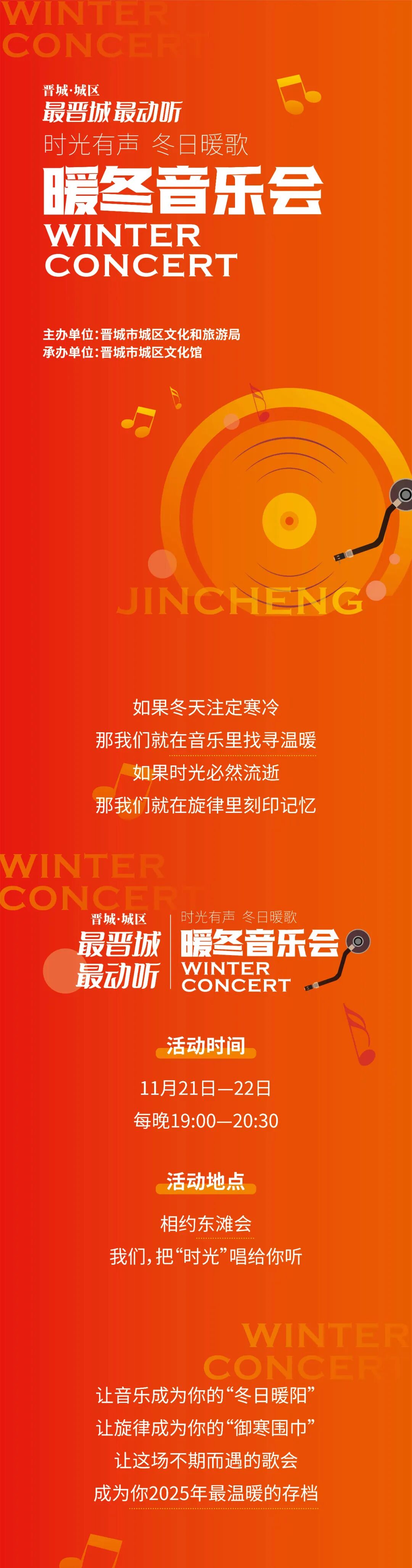 “最晋城 最动听”暖冬音乐会,将在东滩会暖心开唱!