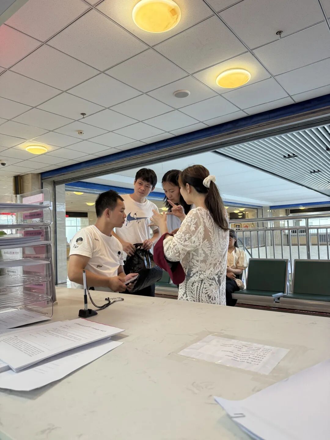 收款二维码需对接银行系统,平台入驻更是涉及商业合作事宜,这些都超出了政务大厅的常规业务范围。小王没有丝毫犹豫,立刻化身“临时传声筒”。她拨通银行人员电话进行询问,一边仔细询问一边在便签纸上认真记录;同时,又通过官方渠道联系美团和饿了么的客服,将聋哑人的需求一一转达。等待回复的时间里,她始终陪在三人身边,不断用文字安抚他们的情绪,让他们安心等待。