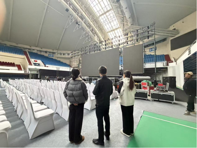 眼下,演出已进入倒计时,企业聘请的专业舞台搭建团队正有条不紊推进舞台施工。城区审批局领导高度重视,带队前往演出场地开展现场视察工作。现场,领导一行详细询问舞台搭建的进度安排、安全保障措施及应急处置预案,实地查看场地消防设施配备、应急通道规划、安保力量部署等关键环节,叮嘱企业务必压实安全主体责任,严格按照规范标准推进施工,确保各项安全要求落实落细。
