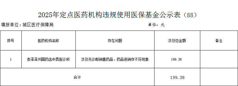 2025年定点医药机构违规使用医保基金公示表
