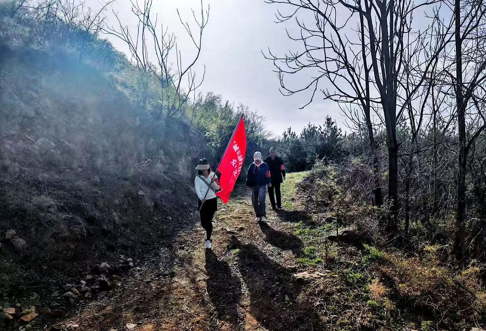 党员冲锋在前:关键时刻有党员冲锋。“聚是一团火,散作满天星。”在局党组的坚强引领下,全体自然资源人凝心聚力、勇毅前行。先锋队实行统一指挥、统一调度,一方面在卡口严查严控,另一方面开展全天候巡护排查,对林区道路、坟头周边、风景游憩区等重点区域进行细致巡查,及时消除火灾隐患。同时,队员们还结合群众祭扫与出游高峰期特点,通过发放宣传单、悬挂横幅、村级广播、微信公众号推送等方式,广泛普及森林防灭火知识,推动防火意识深入人心。