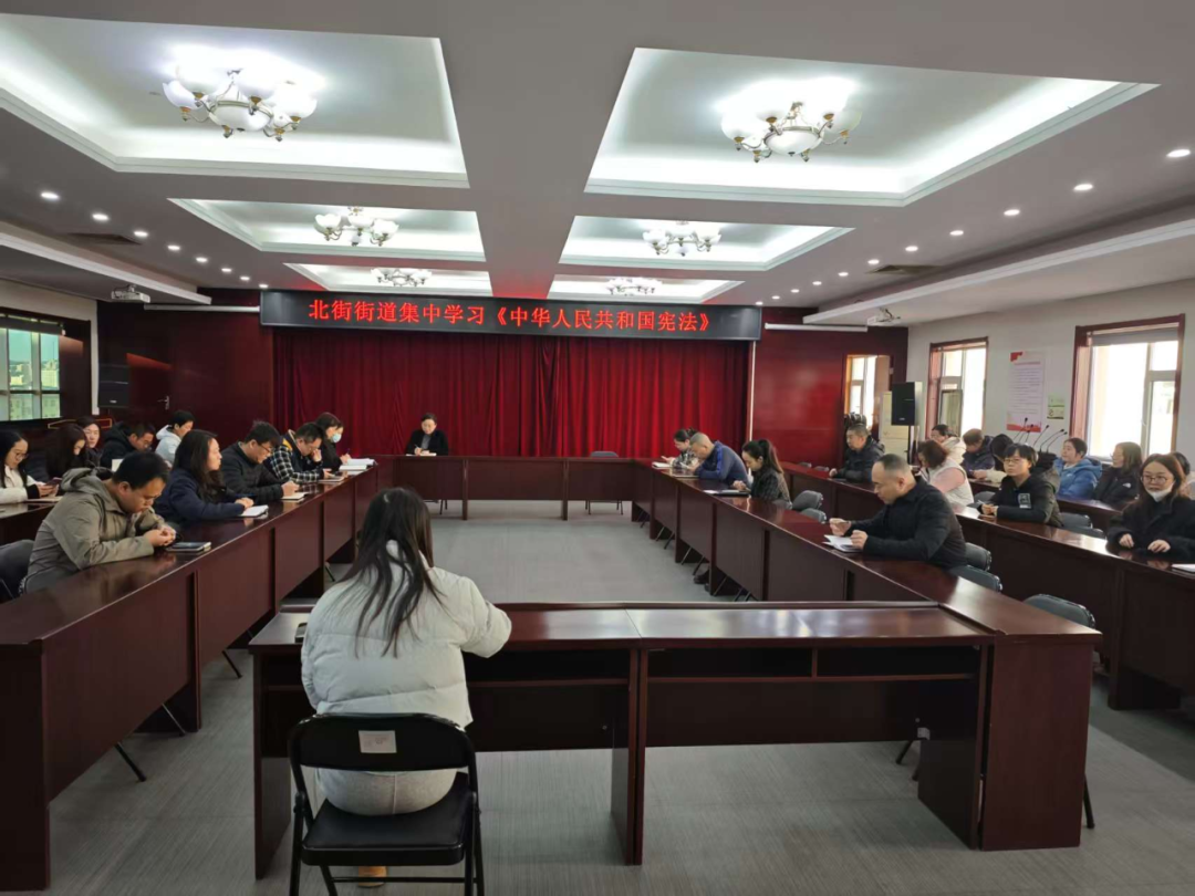 一是领导干部带头学。召开北街街道《中华人民共和国宪法》专题学习会议,组织街道全体干部职工学习宪法,引导大家要模范遵守宪法,忠实执行宪法,做好“领头雁”,当好“火车头”,切实为辖区干部群众尊法学法守法用法做好表率,担起责任,充分发挥示范和引领作用。