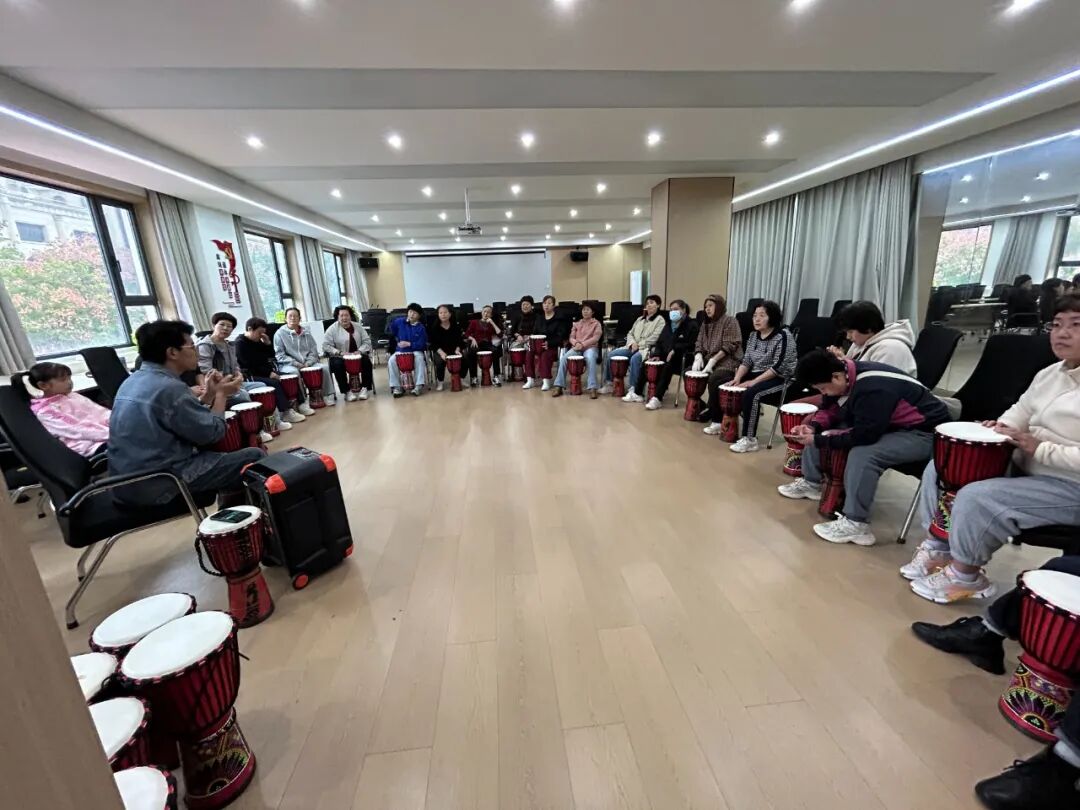 “练了一下午,手都酸了,但心里特别快乐!”一位参与非洲鼓课程的阿姨笑着说。