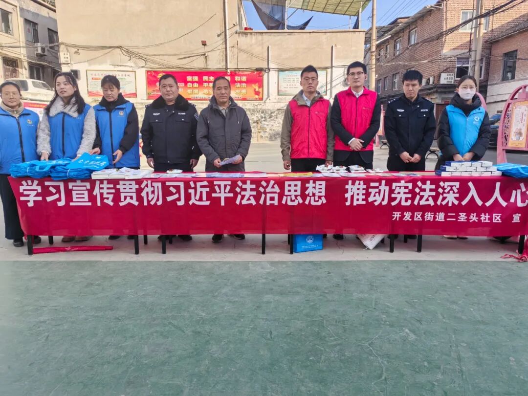 为深入学习宣传贯彻习近平法治思想,推动宪法精神深入人心,在“12·4”国家宪法日来临之际,12月2日下午,开发区街道司法所联合街道综治中心、二圣头社区及开发区公安局分局兰花路派出所,在二圣头社区法治广场共同举办宪法宣传周主题活动,为辖区居民送上一场“法治盛宴”。