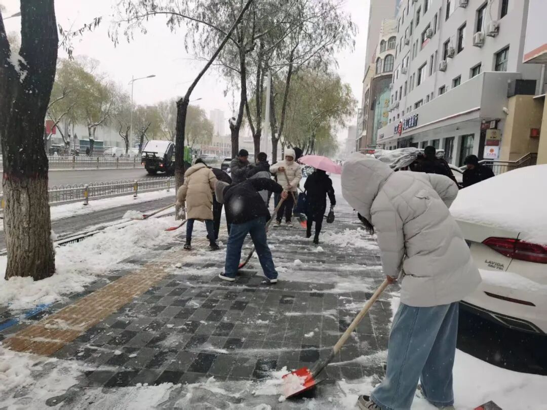 下午两点,街道、社区工作人员和志愿者们便手持工具,奔赴各主干道、小区出入口。大家顶着寒风,齐心协力,抢在积雪压实前清扫出了条条通道。那一抹抹忙碌的“志愿红”,成了雪中最温暖的风景。