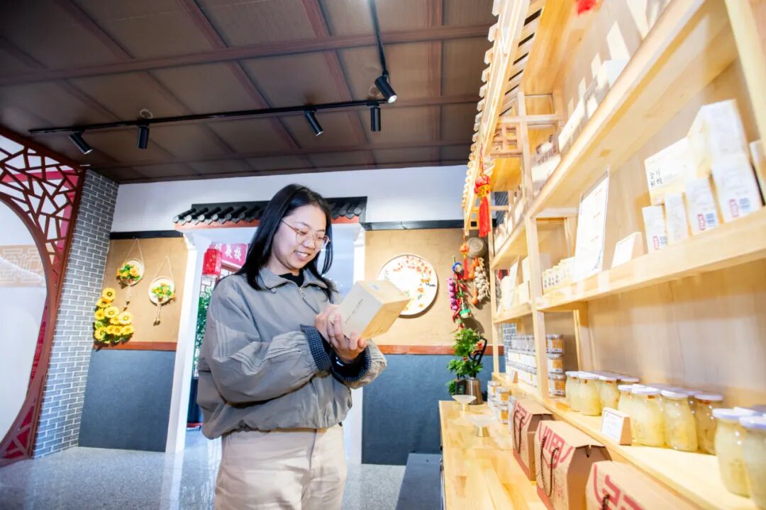 阿玲食品创始人司彩玲说,以前咱村里的农产品藏在深山很少有人知道,现在有了“牛山铺子”这个平台,我和返乡的年轻人们一起做直播,把核桃、玫瑰酱这些牛山村的本土特色向全国各地的人进行推广,原材料都来自牛山村,既保证了新鲜,又帮乡亲们增加了收入,光我们厂子就带动了10多名村民在家门口就业。