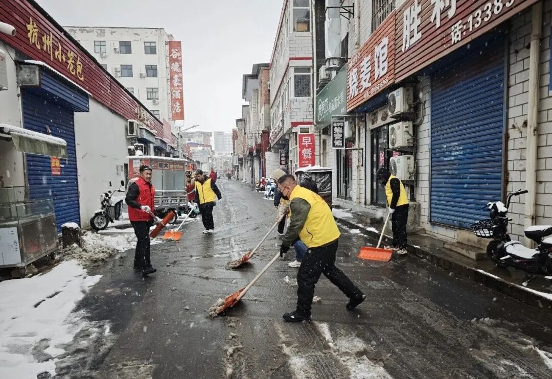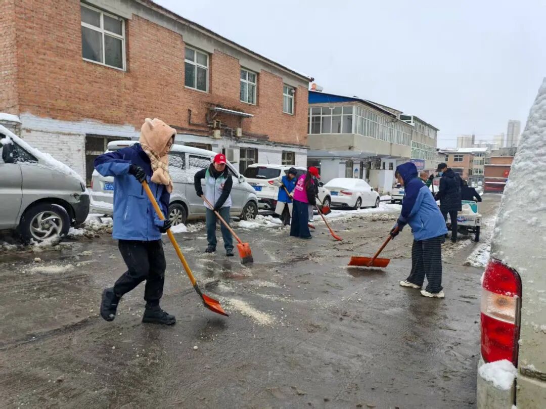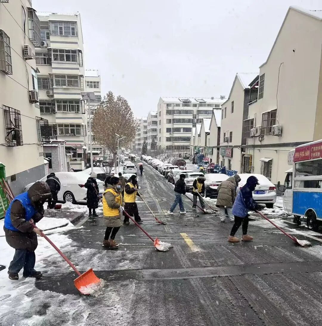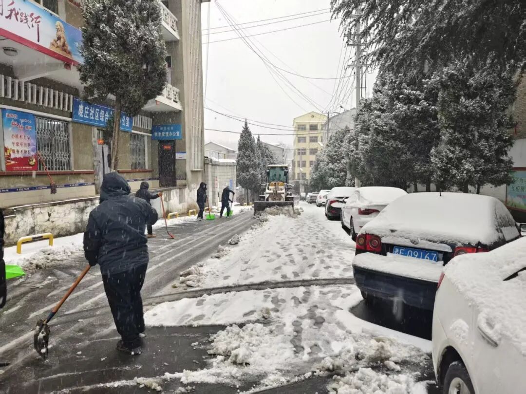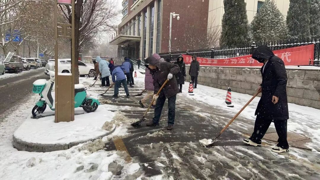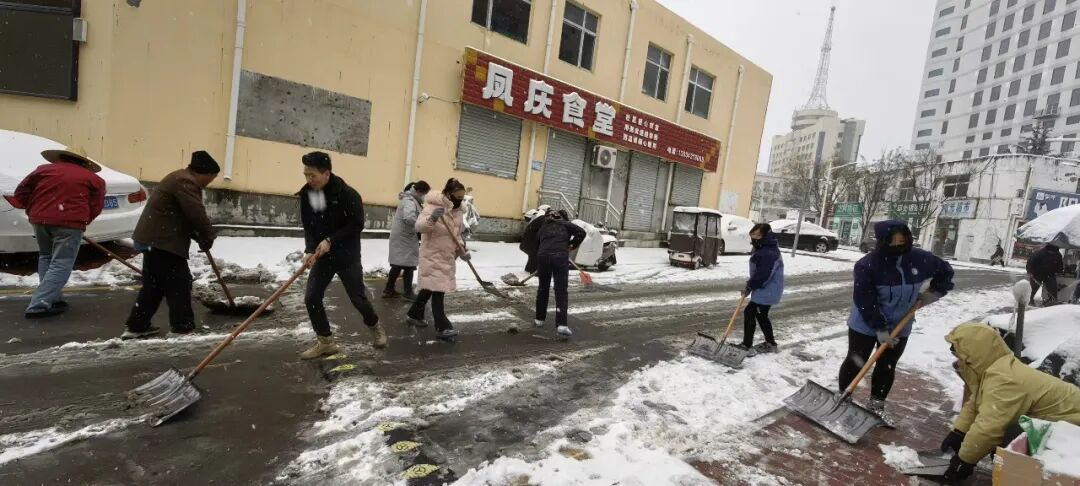 边下边清!防止路面结冰影响群众生产、生活,中午时分,钟家庄街道吹响除雪清冰“集结号”,机关全体人员、各村(社区)工作人员、党员志愿者等积极行动,重点对辖区内村(社区)主要出入道路、背街小巷、学校、居民小区等地的积雪进行全面清理,确保出行通畅、安全!