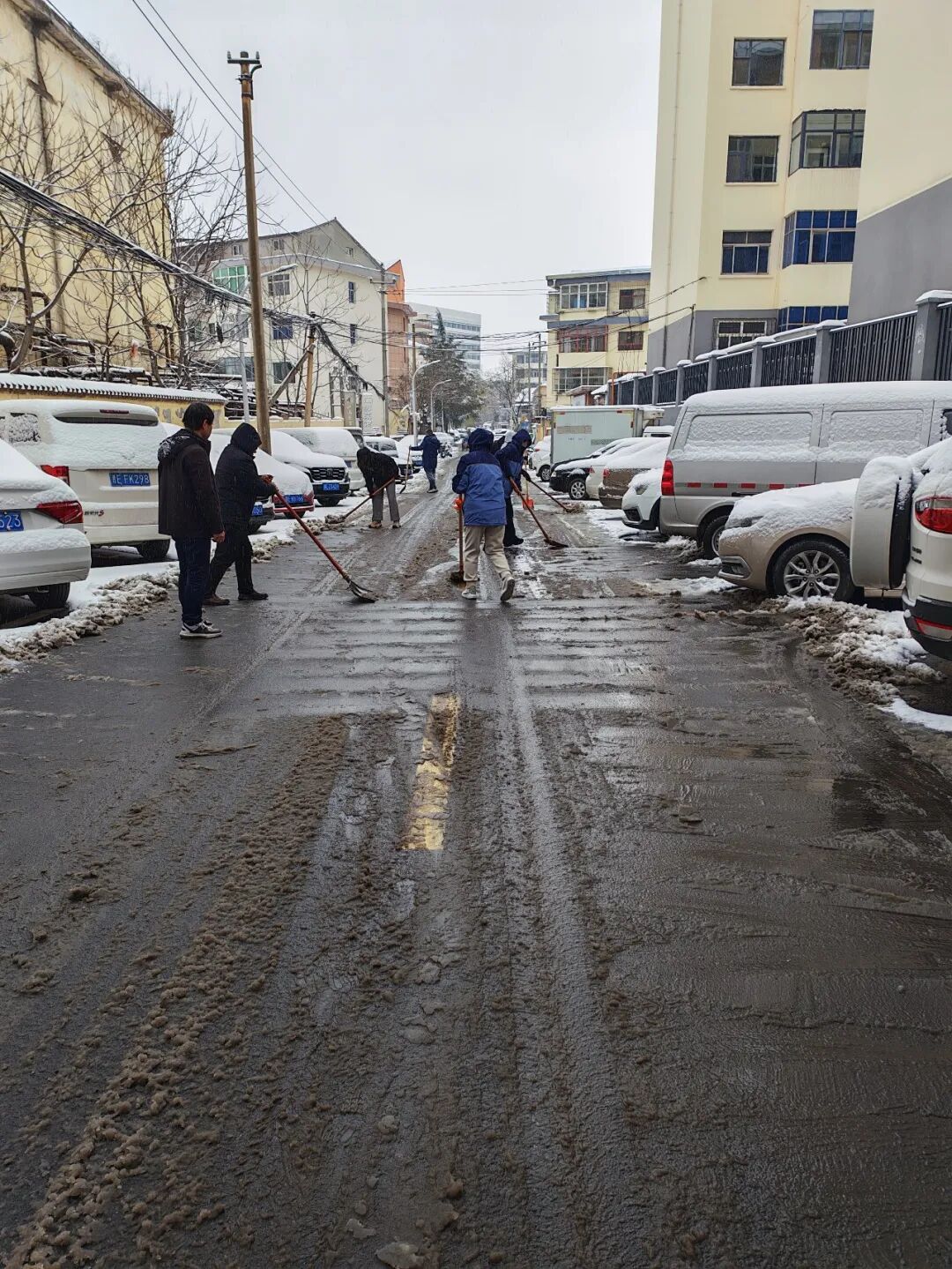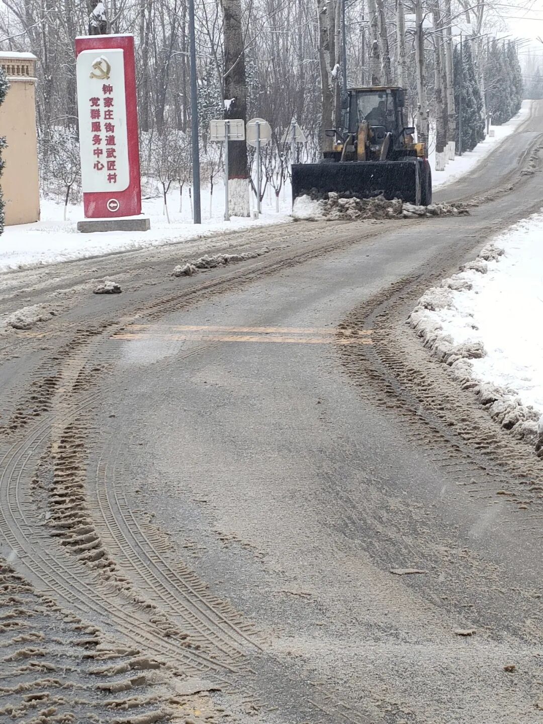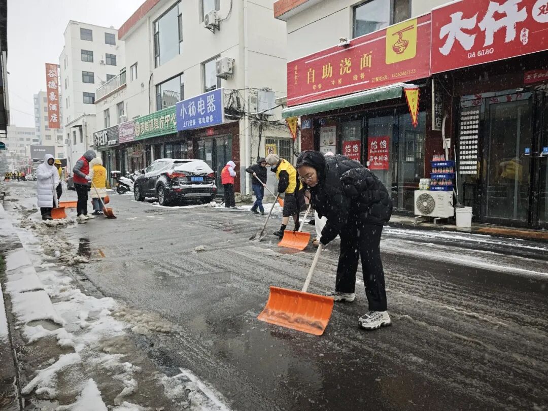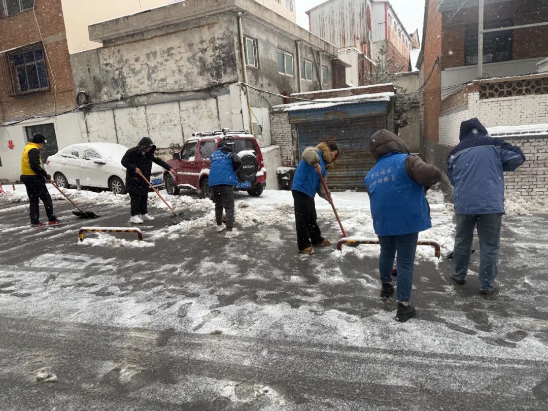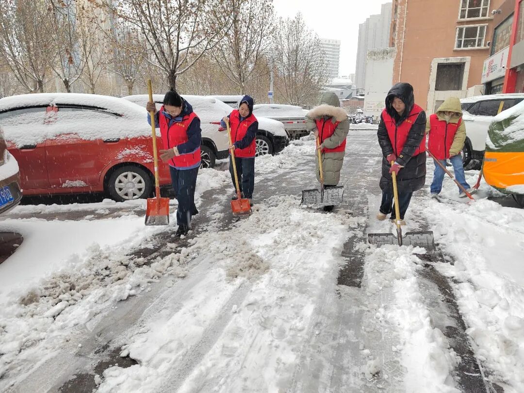 边下边清!防止路面结冰影响群众生产、生活,中午时分,钟家庄街道吹响除雪清冰“集结号”,机关全体人员、各村(社区)工作人员、党员志愿者等积极行动,重点对辖区内村(社区)主要出入道路、背街小巷、学校、居民小区等地的积雪进行全面清理,确保出行通畅、安全!