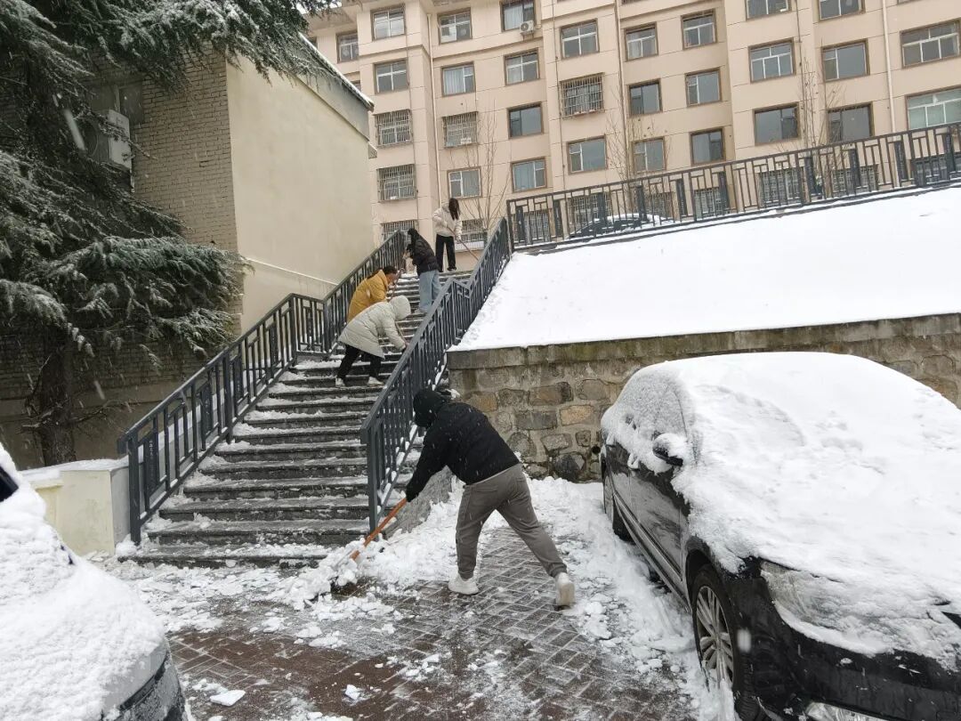 互相鼓励、默契配合铲除冰雪