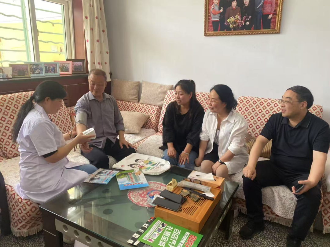 活动最后,大家一同走进辖区老党员家中,为他们测量血压、血糖。“谢谢你们上门关心,我们年纪大了出门不方便,这样的服务太贴心了!”80多岁的老党员范文平拉着工作人员的手连连道谢。