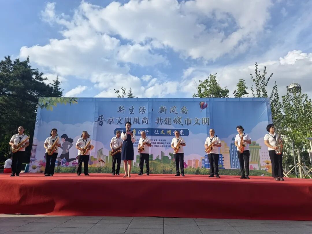 活动现场,丰富多样的互动环节让热烈氛围持续高涨。八音会激昂奏响、威风锣鼓铿锵有力,交替间点燃全场热情;萨克斯演奏《十送红军》《我爱你中国》旋律悠扬,不少市民不自觉跟着轻声哼唱,沉浸在红色经典与爱国情怀中;“八段锦”一招一式间尽显传统养生“动静结合”的独特智慧,成为现场一道别样风景线;大合唱环节更是将氛围推向高潮,数百人手持小国旗,齐声唱响《学习雷锋好榜样》《歌唱祖国》,嘹亮歌声里满是对文明生活的美好向往。