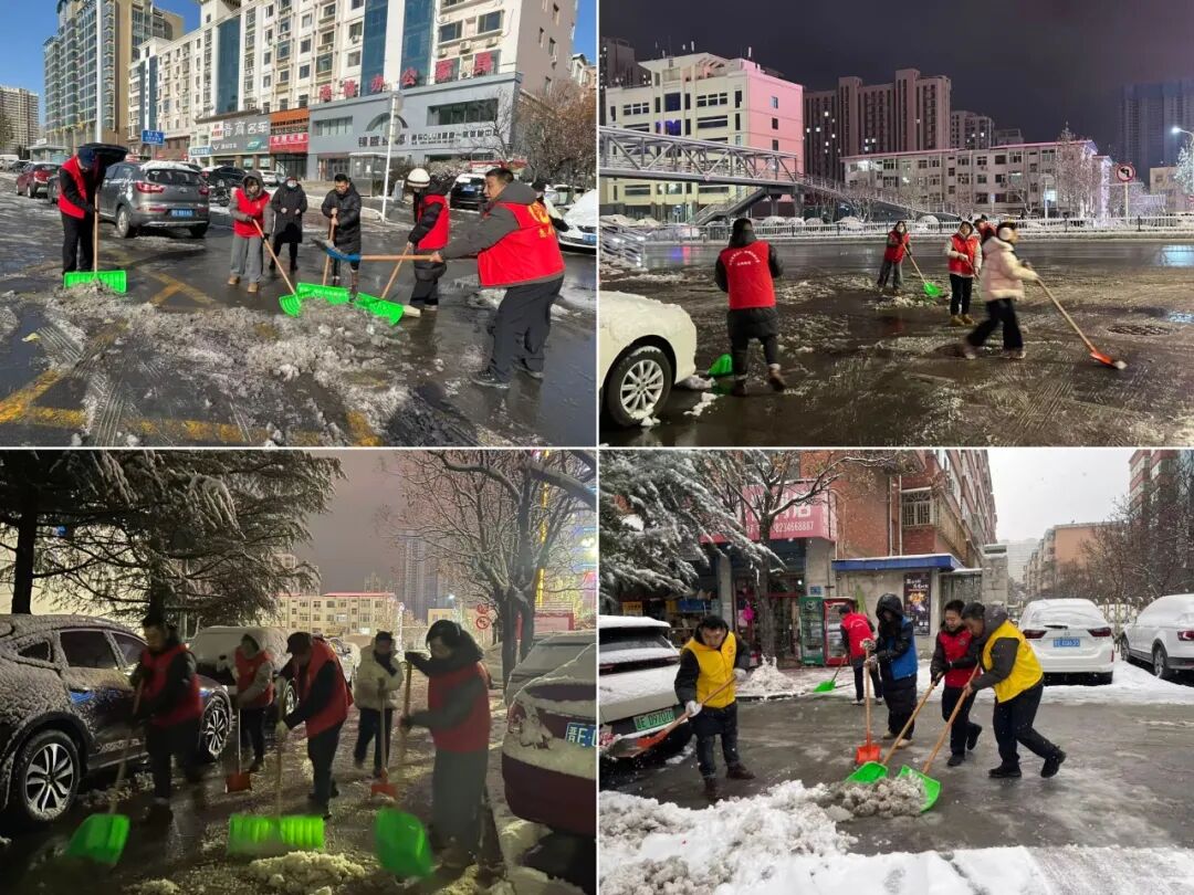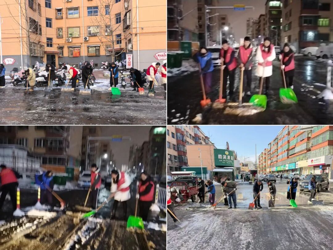 此次行动中,机关干部带头冲锋,各社区全员行动,分别于12日中午、12日晚上及13日中午,分三次集中力量对辖区道路、小区出入口等重点区域进行扫雪除冰,确保积雪结冰及时清理,最大程度降低出行风险。