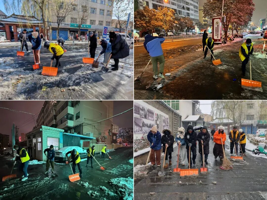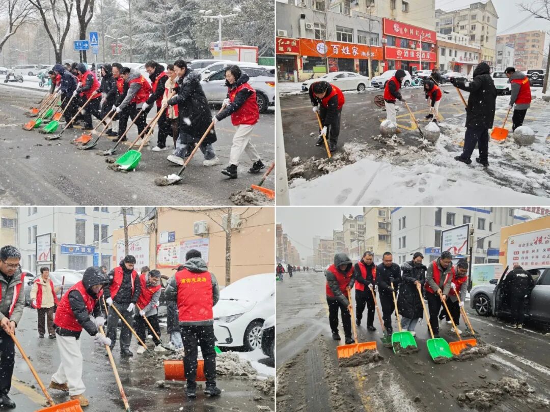 雪情就是命令,保障就是责任。为保障居民正常生活秩序和出行安全,南街街道迅速启动应急响应机制,组织机关干部、各社区工作人员及志愿者开展全域清雪除冰行动,用责任与温情为市民扫出一条条“平安路”“暖心路”。