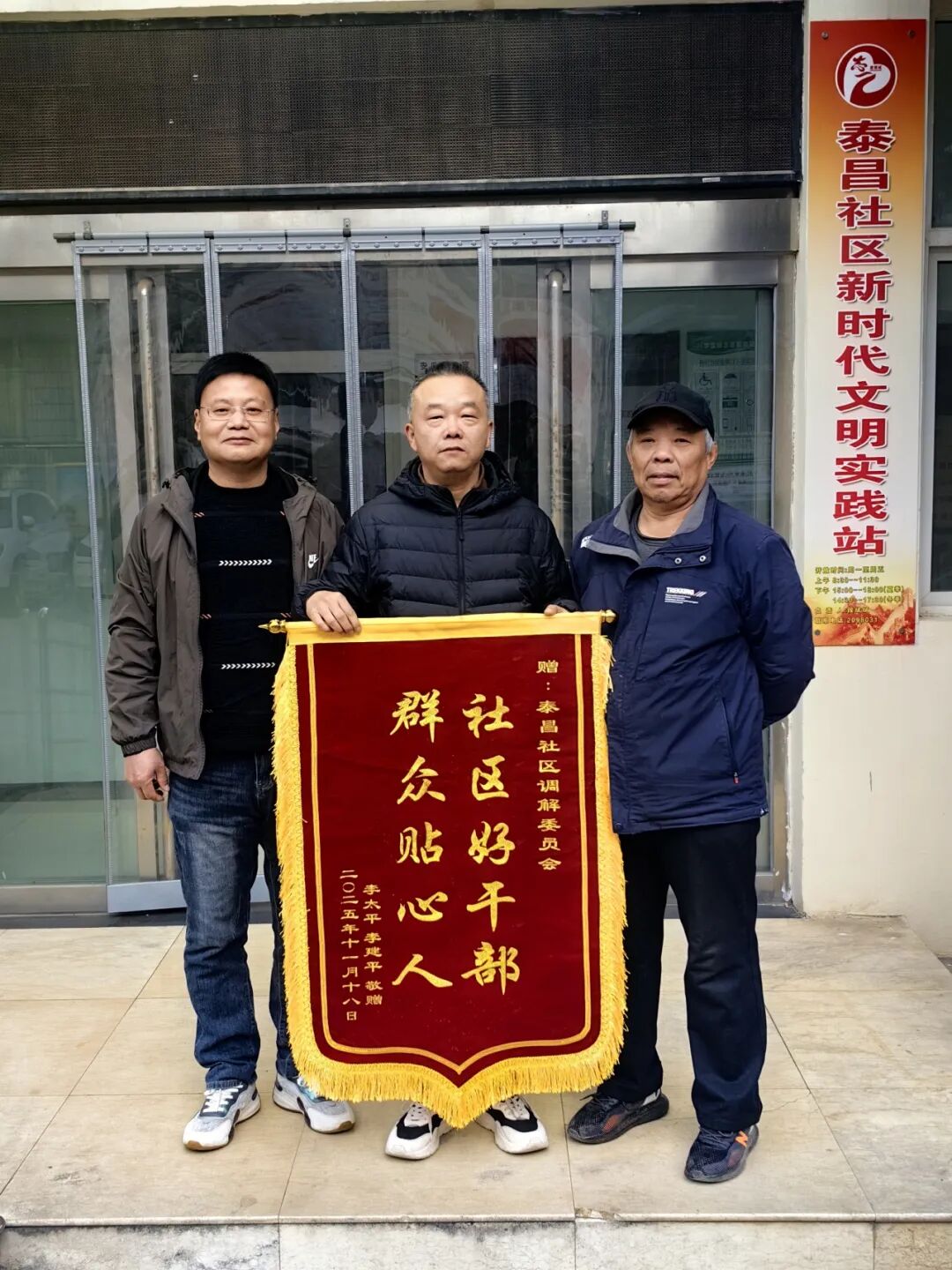 12月8日,城区泰昌社区党群服务中心洋溢着温馨与感动,社区居民李家兄弟俩手捧一面写着“社区好干部、群众贴心人”的锦旗,满怀感激地送到了社区党委书记宋少波手中。