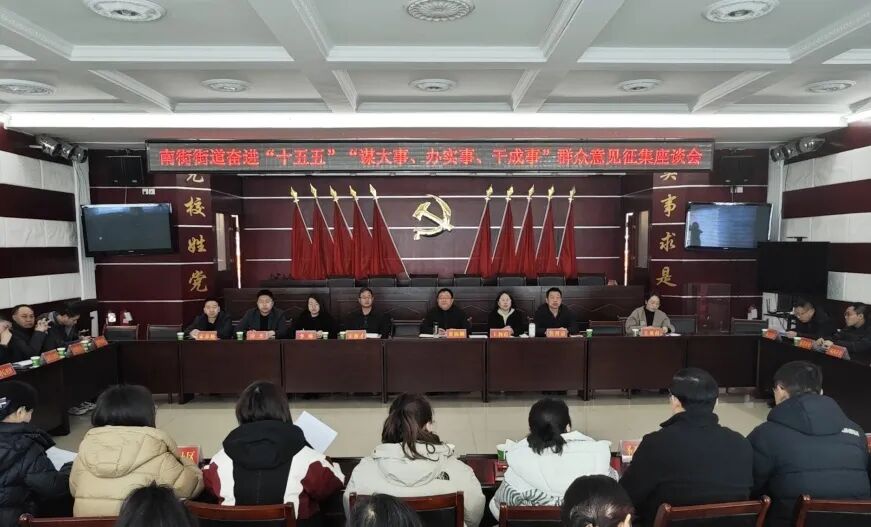 为充分听取社会各界意见建议,凝聚智慧力量,共同谋划推动“十五五”期间晋城市、城区、南街街道高质量发展,2月12日,南街街道组织召开奋进“十五五”“谋大事、办实事、干成事”群众意见征集座谈会。来自各社区、企事业单位、民营企业、社会各界的代表齐聚一堂,围绕产业发展、城乡融合、创新创业、民生改善、社会治理等五大类12个领域,畅所欲言、建言献策。