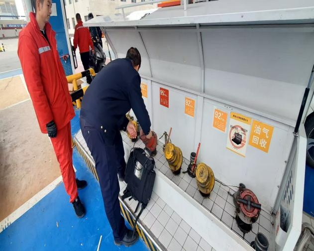 为筑牢辖区加油站生态环境安全防线,近日,城区分局执法人员聚焦油罐操作井及加油机密封等关键环节,开展专项渗漏检测执法行动,从严排查环境风险隐患。